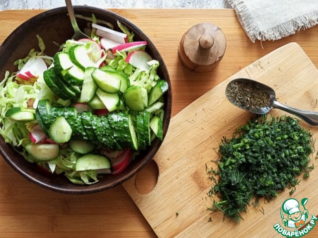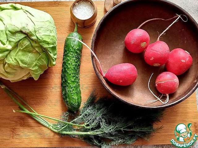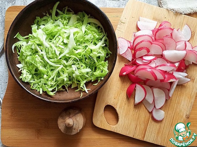 Ингредиенты для «Салат с молодой капустой и редисом»: