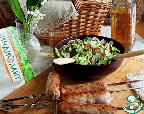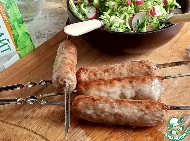 Купаты тоже готовы. Они быстро приготовятся на шампурах.