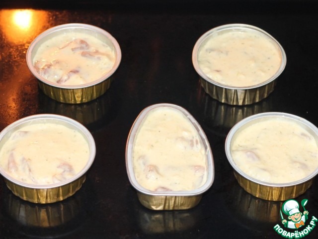 9. Так как формочки у меня металлические, то запекать филе в кляре можно на гриле, на природе. Или дома в духовке. Ставите противень в духовку и включаете нагрев на 180 С. Запекается блюдо минут 30.