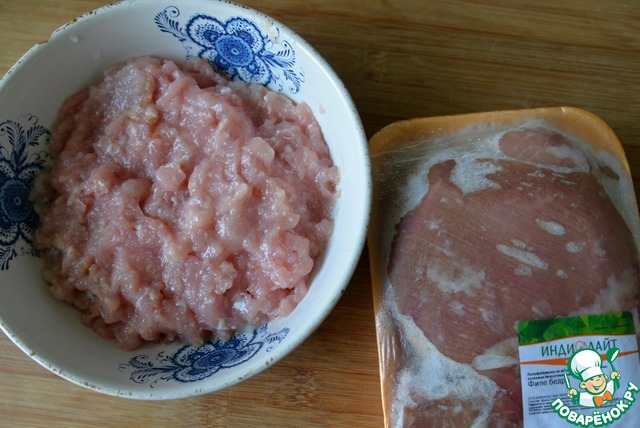 Для приготовления берём филе индейки. У меня - филе бедра индейки Индилайт. Перекручиваем в фарш. -