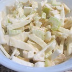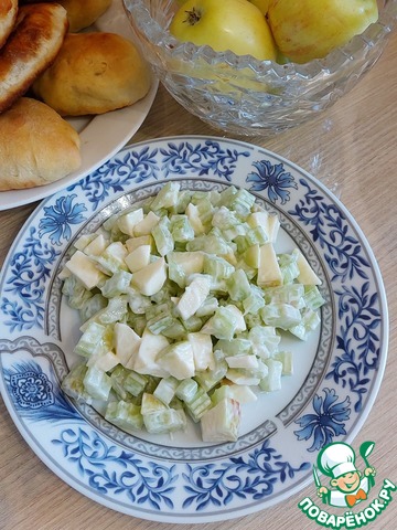 Этот салат для любителей сельдерея, среди которых и я. Очень вкусно получилось, я даже не ожидала. Сделала 2 разных варианта заправки. Оба варианта салата очень понравились.