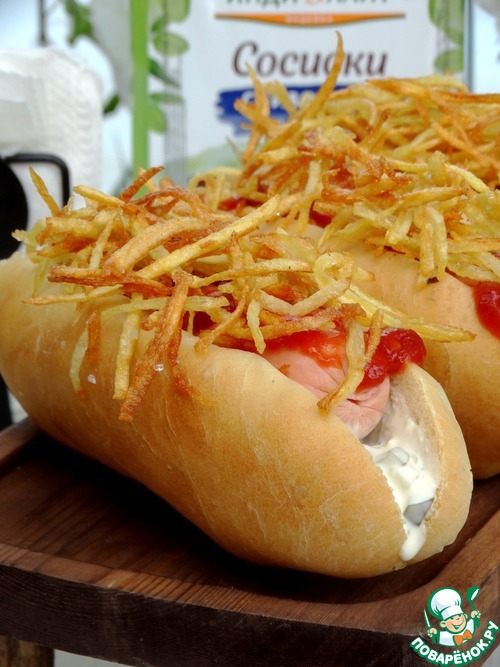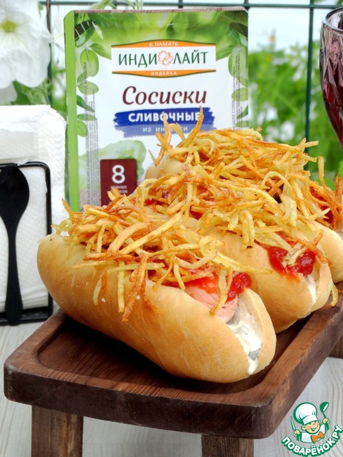 Рекомендую, готовый хот-дог сначала подогреть на решетке гриля/мангала, а потом посыпать картофелем. Булочка будет с приятным хрустом.