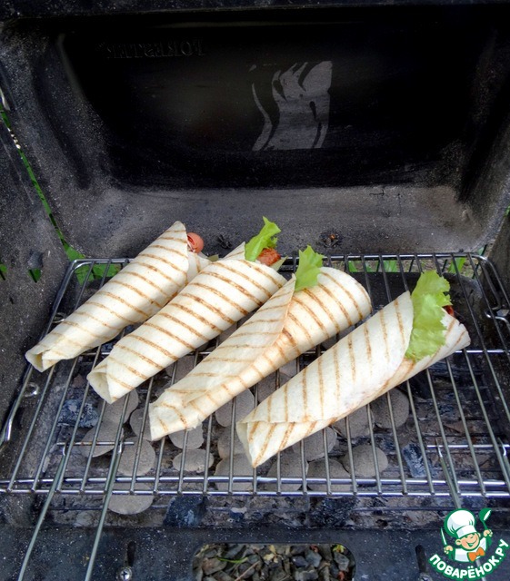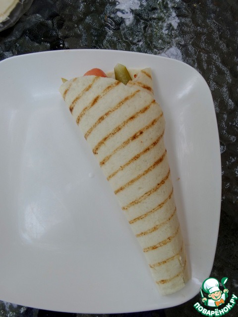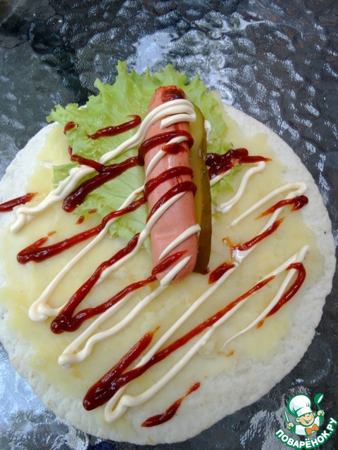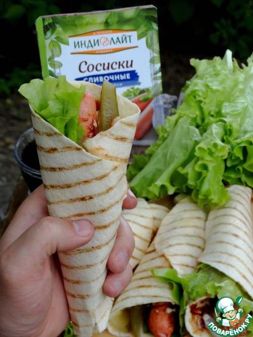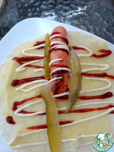 Рецепт «Лепёшка-гриль с сосиской и картофелем»: