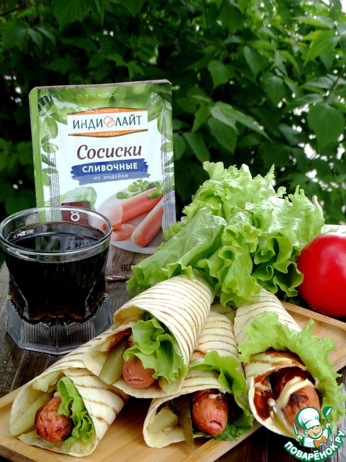Лепёшка-гриль с сосиской и картофелем