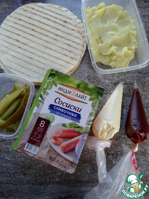 Ингредиенты для «Лепёшка-гриль с сосиской и картофелем»: