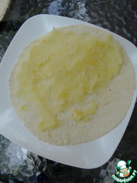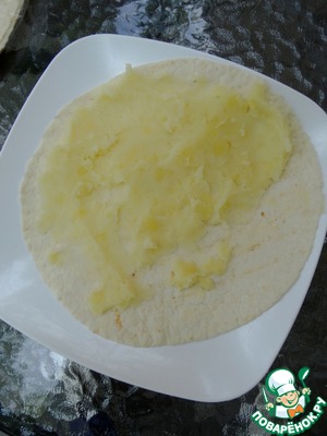 На лепешку тонким слоем намазать пюре.