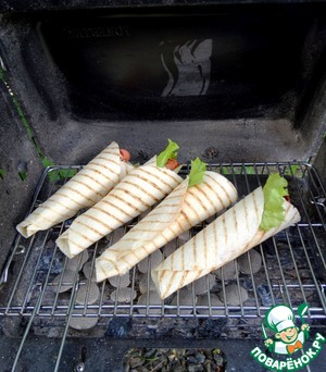 Выложить на решётку гриля/мангала и слегка подрумянить.