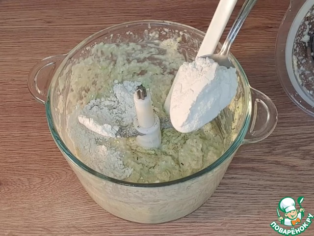 10. Далее всыпаем 3 ст. л. муки (с горкой) и перемешиваем до однородности массы.