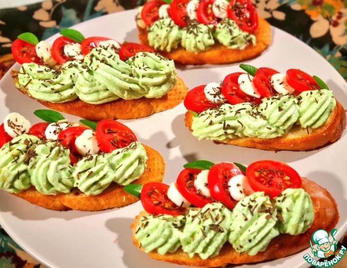 Бутерброды и брускетты, плотно заняли гастрономическую нишу! Праздничное торжество, домашние посиделки или просто перекус, чаще всего, не обходятся без этой быстрой и разнообразной закуски. Сегодня, на ваш суд)), хочу предложить такое классное сочетание: творожный сыр, авокадо, моцарелла и черри и всё это на подсушенном ломтике батона.