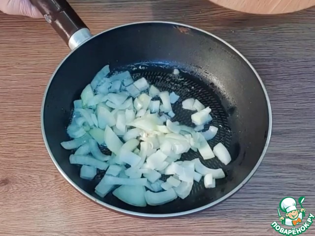 5. Лук обжариваем на разогретом растительном масле (2 ст. л.).