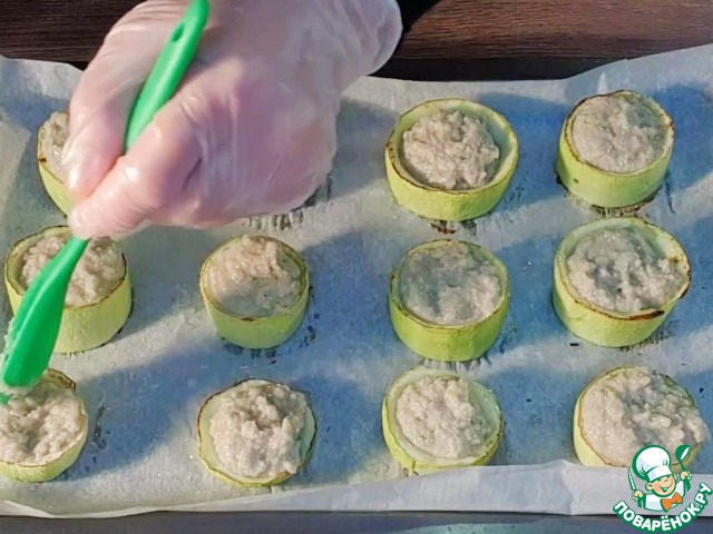Рецепт «Аппетитная закуска из кабачков и индейки»: