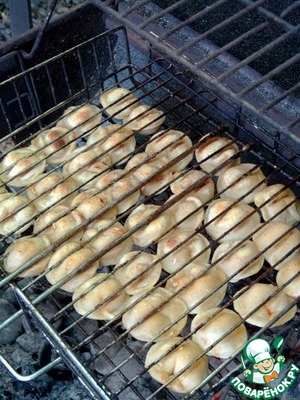Для приготовления пельменей на гриле/мангале их надо слегка подморозить, ну или после глубокой заморозки слегка разморозить.
