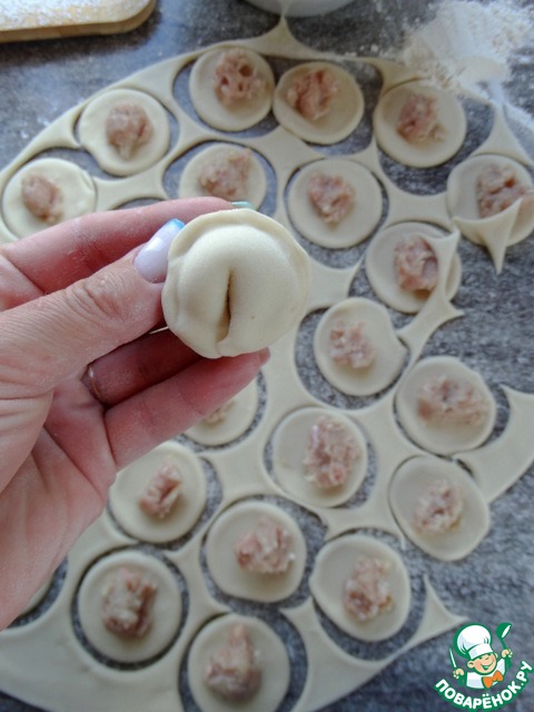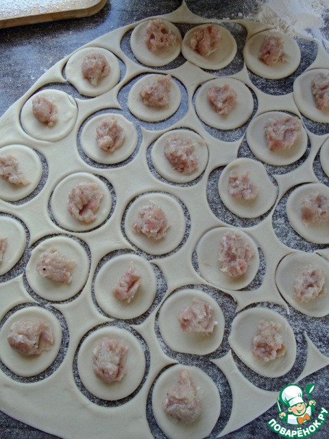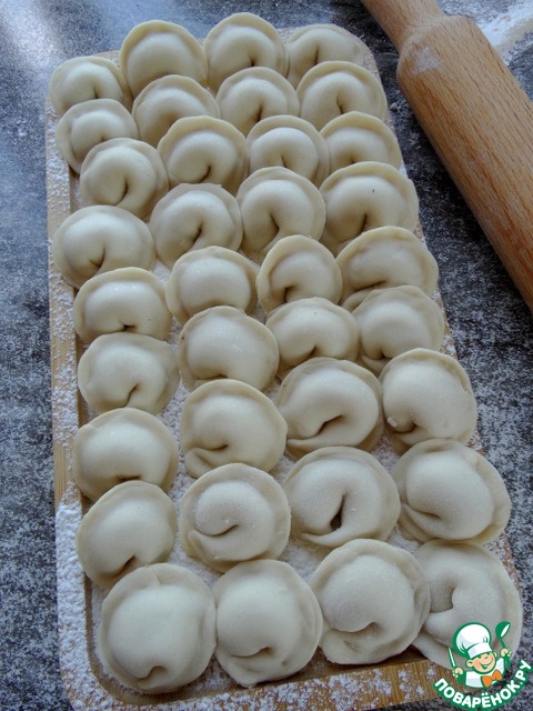 Из этого количества теста и фарша выходит около 50 пельменей, опять же, всё зависит от их размера.