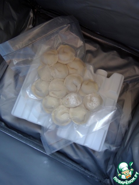 Если у вас нет частного дома или дачи, на природу тоже можно взять такие пельмени, завакуумировав мороженые пельмени и транспортируя их в холодильнике, но этот вариант не для долго хранения, в любом случае)).