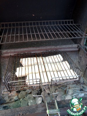 Шаурму-бурито разместить в закрытой решётке и поставить на гриль/мангал с умеренно жаркими углями.