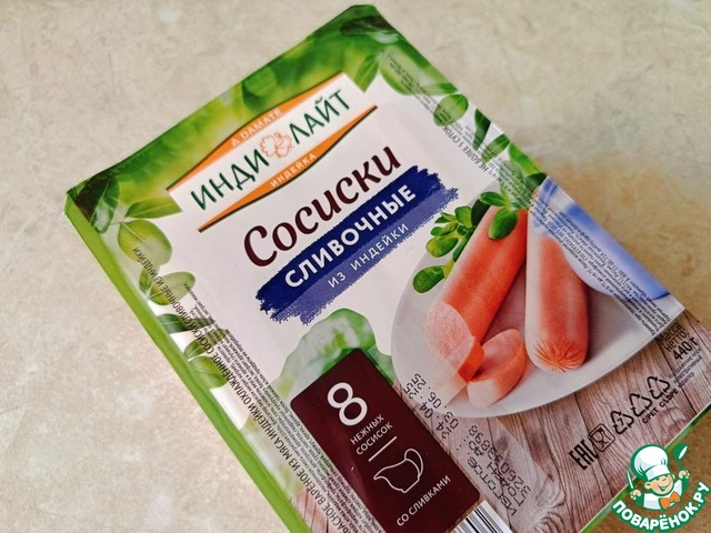 Основное блюдо это сливочные сосиски ТМ Индилайт.
