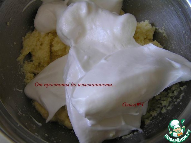 Для начинки яйца разделите на белки и желтки. Белки взбейте в крепкую пену и уберите в холодильник.