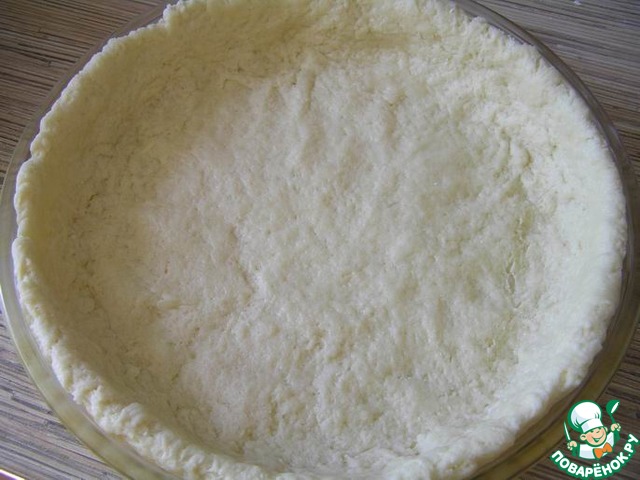 Тесто распределите руками в форме (у меня диаметром 24 см), сделав бортики.