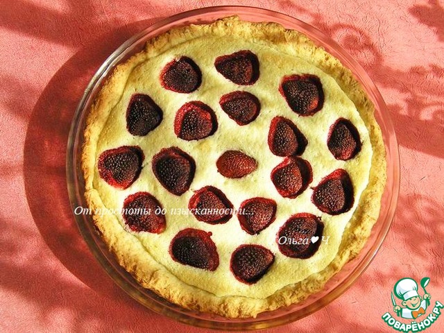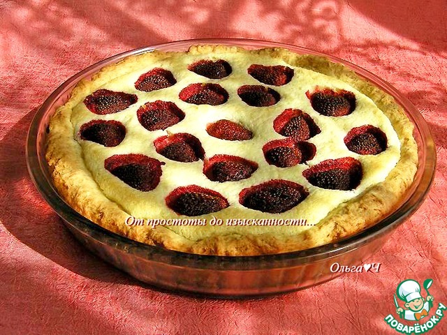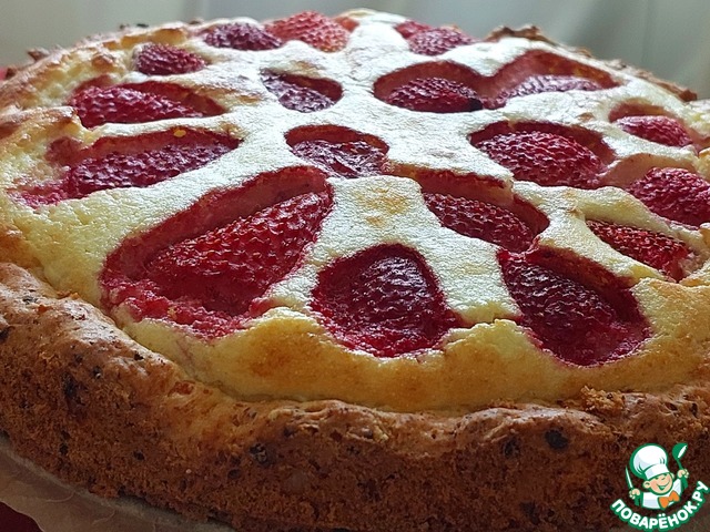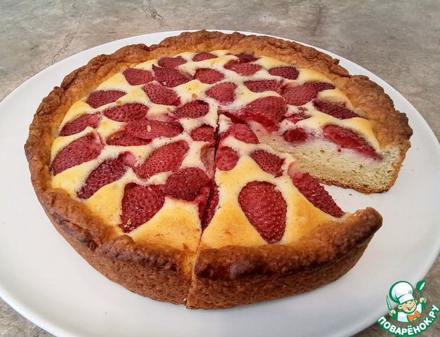 Роскошный творожный пирог с воздушной начинкой и свежей клубникой. Получается очень вкусный, ароматный и нежный пирог. Кстати, вместо клубники можно использовать и другие ягоды по сезону. Попробуйте!