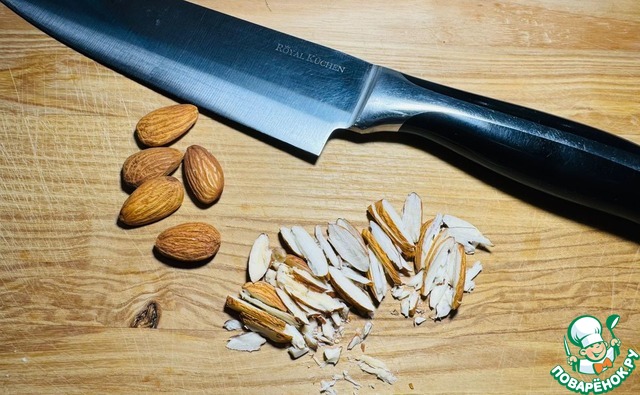 Миндаль порубить ножом. Можно использовать любые орехи на Ваш вкус.