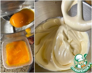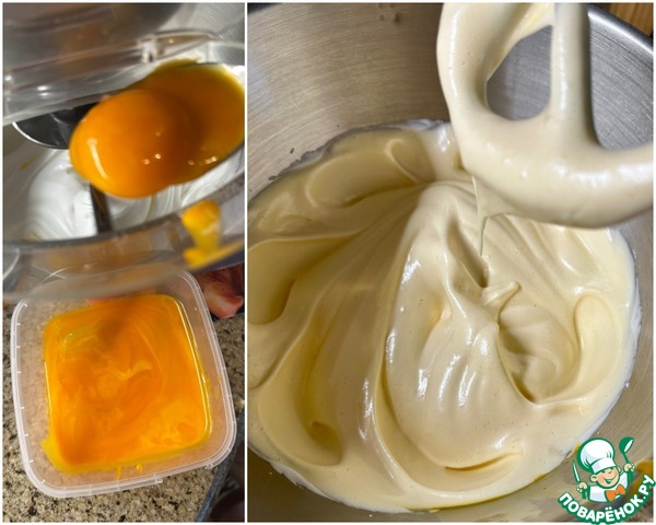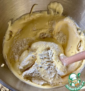 По одному подмешал в смесь желтки. Не взбивая, хорошо перемешал. На минимальной скорости.