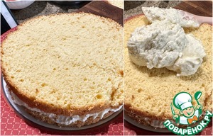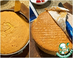 Разрезал бисквит на 3 коржа.