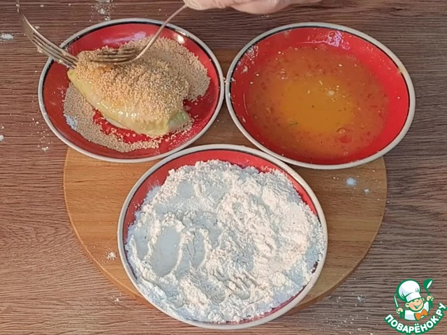 12. Макаем голубцы вначале в муку, затем в взбитое яйцо, а затем в сухари и обжариваем на разогретом растительном масле с 2 сторон по 2 минуты. Ни фарш, ни капуста за это время не успеют приготовиться, блюдо только зарумянится.