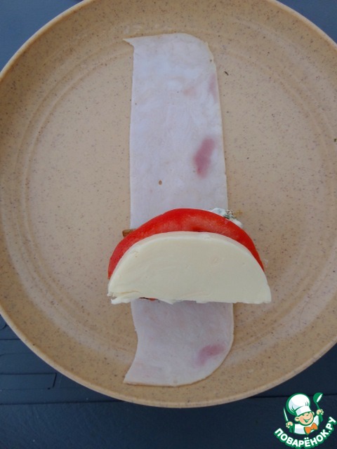 • Готовить, переворачивая, чтобы сыр расплавился, а ветчина подрумянилась.