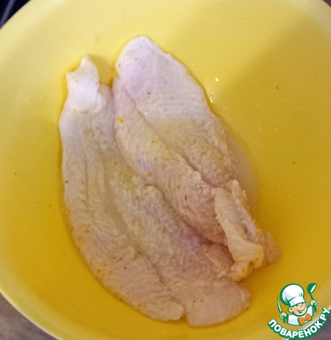 На 15 минут замариновать рыбу с куркумой, лимонным соком и солью.