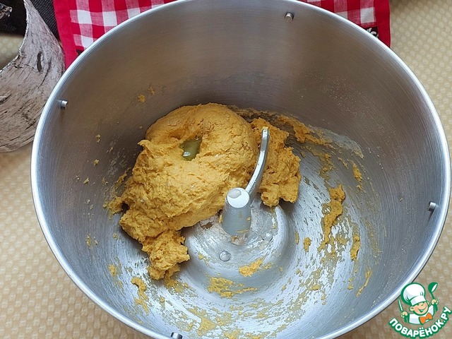 • Добавить жидкие. У меня дрожжи, которые требуют предварительного растворения. Количество пюре уменьшила на количество воды для дрожжей.