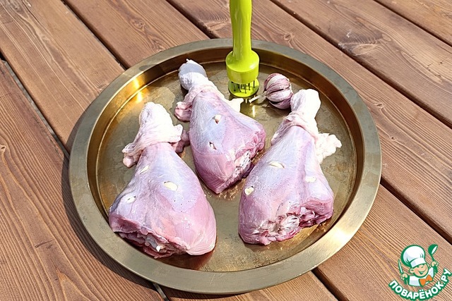 Голени индейки извлечь из упаковки, вымыть, обсушить.