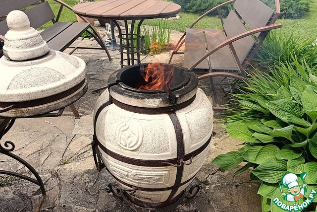 С тех пор как у нас появилась дача - все пикники отмечаем на ней. Родня и друзья любят кушать блюда, приготовленные на природе нашего участка. На даче есть костровая площадка, оборудованная для приготовления пищи. Есть тандыр, казан, мангал, садж... Сегодня готовим голени индейки в тандыре. Тандыр - это глиняная печь, в которой еда готовится от жара стенок, после протопки дров. Пища в тандыре приготавливается быстрее обычного, сохраняя свои целебные свойства...