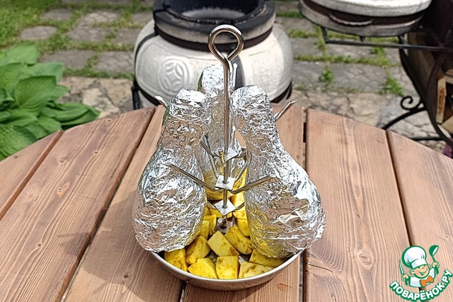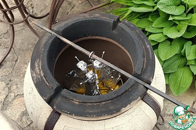 Голени завернуть в фольгу, поместить на решетку для тандыра "елочка".