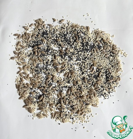 Приготовить ингредиенты. Семечки можно взять любые, я взяла по 15 грамм подсолнечные и кунжут, и 10 грамм мака.