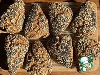 Уголки разложить на противень, застеленный бумагой для выпечки, переворачивая семенами наверх. Я, снимая булочки, обмакивала и другую сторону, дабы собрать все возможные семена.