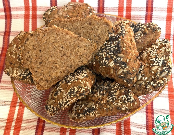 Выложить тесто на семечки, разровнять ложкой или силиконовой лопаткой, сформировать круг толщиной около 2 см. Нарезать на 8 уголков.