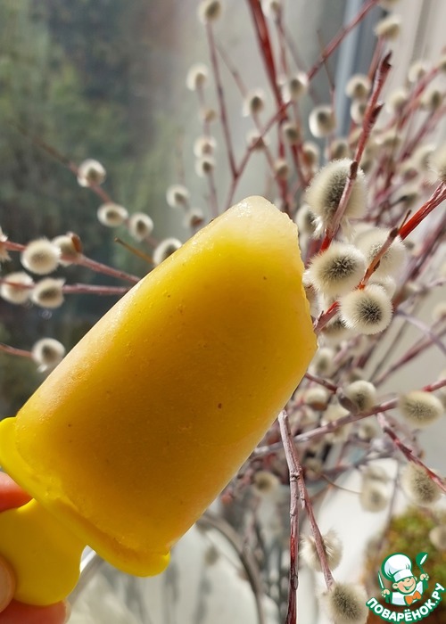 Можно сделать еще холоднее, заморозив смузи. Я так и поступила со второй порцией: как раз хватило на комплект форм. Далеко не каждый овощной смузи вкусен в замороженном виде. Этот вариант - вполне. В замороженном вкусе преобладает облепиха. Это не жирный сладкий пломбир, а просто нефруктовый лёд (овощным его вкус назвать сложно).