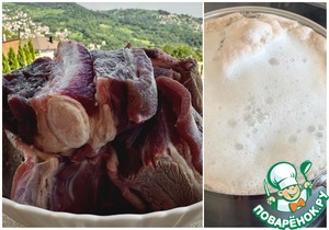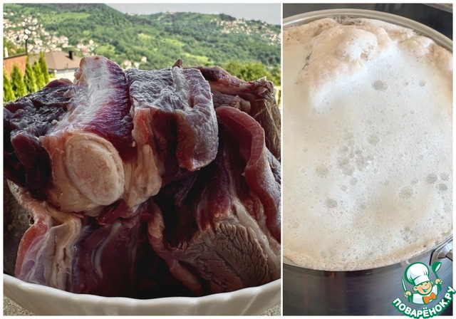 Я обычно довожу «пока не бульон» до сильного кипения, как правило, образуется обильная пена. Пару минут даю покипеть, а потом эту воду сливаю. Мясо промываю. Кастрюлю тоже рекомендую вымыть.