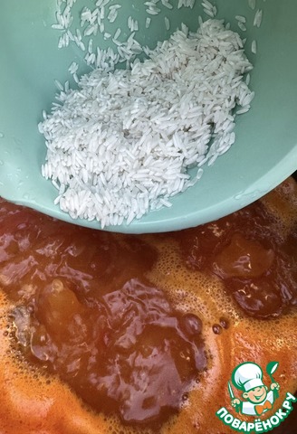 Увеличил нагрев. И как только взбулькнуло, нагрев опять на минимум и в казанок отправился хорошо промытый рис.