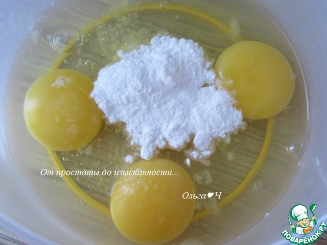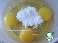 Яйца смешайте венчиком с сахарной пудрой и солью.