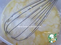 Оставшееся молоко хорошо разогрейте со сливочным маслом, добавьте горячую смесь к тесту, постоянно помешивая.
