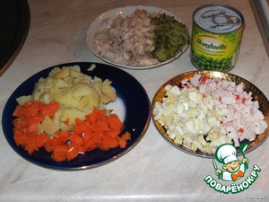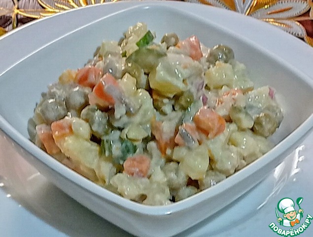Вполне обычный салат, но довольно вкусный. Когда-то почти такой подавали в совковые времена в ресторанах. Ностальгия, понимаете ли...