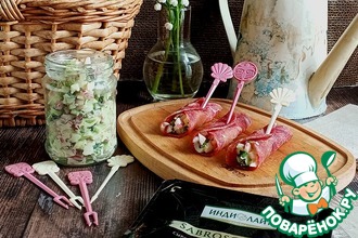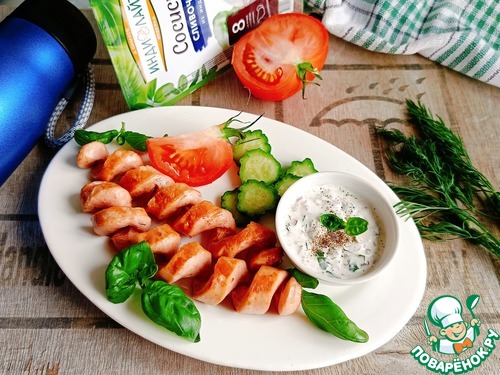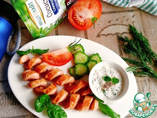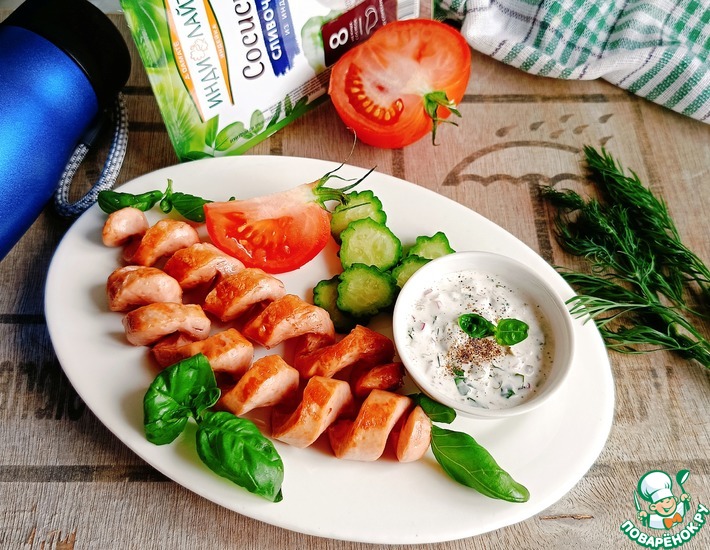 Рецепт «Сосиски-спиральки с базиликовым соусом»: