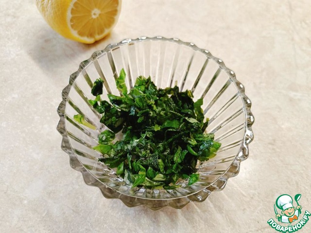 Оборвать листики с веточек базилика и нарезать. Добавить чайную ложку лимонного сока и оставить на 10 минут. -