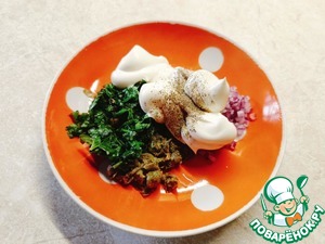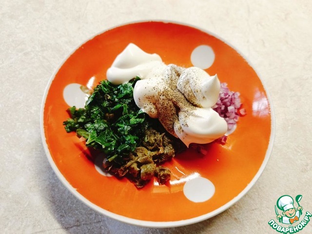 Соединить всё вместе. По вкусу соль, черный перец, я добавила маленькую щепотку сахара.