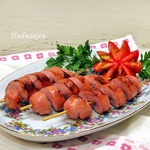 Сделайте к сосискам пикантный базиликовый соус, а сами сосиски превратите в спиральки и у вас будет вкусный и весёлый пикник!
