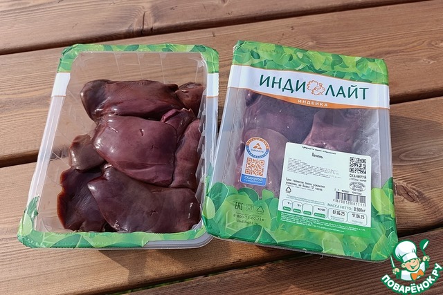 Печень индюшки распаковать. Помыть, обсушить.