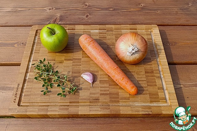 Подготовить - лук, морковь, чеснок. Веточки тимьяна хорошо промыть, обсушить.