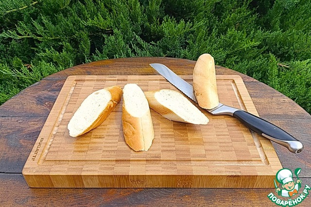 Багет порезать на порциональные ломтики.