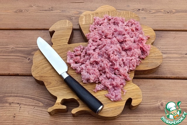 Убрать лишний жирок и жилки, очень мелко порубить ножом.